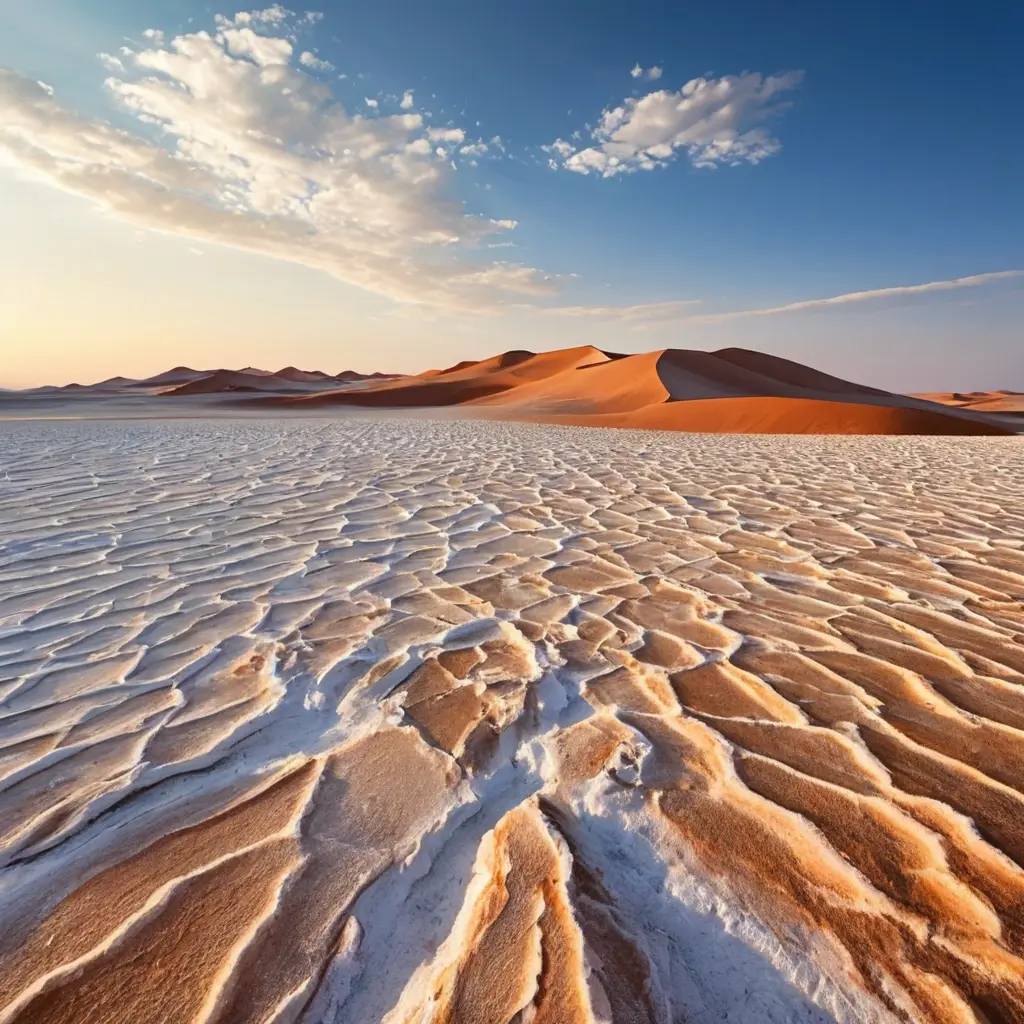 Соляные пустыни представляют собой обширные участки земли, покрытые либо сплошным слоем соли, либо чередующимися солями и осадками. Это природные образования с характерным блестящим, белоснежным или слегка бежевым рельефом, зачастую контрастирующим с окружающей природой.